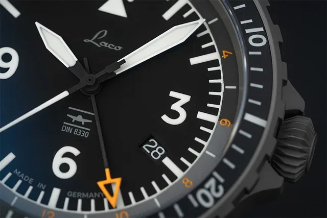Weitere Informationen erhalten Sie unter www.laco.deDie DIN 8330 ist eine Norm, die höchste Standards für Fliegeruhren festlegt, um den anspruchsvollen Anforderungen des Flugbetriebs und der Piloten gerecht zu werden. Diese Standards umfassen Widerstandsfähigkeit gegenüber flugbetriebstypischen Flüssigkeiten, Kompatibilität mit der Cockpitumgebung, Vermeidung von Reflexionen und Blendwirkungen sowie Stoßfestigkeit.
