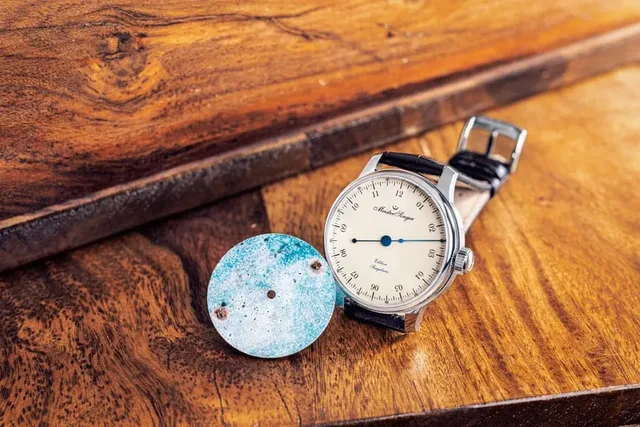 Meistersinger verdankt seinen Erfolg seinen Einzeigeruhren. In den über 20 Jahren ihres Bestehens hat die in Münster ansässige Marke immer wieder gezeigt, wie variantenreich man dieses Thema spielen kann. Das Faszinierende einer Einzeigeruhr liegt nicht nur in dem – wegen der nur auf 5 Minuten genauen Zeitanzeige gegebenen – entspannteren Umgang mit der Zeit, sondern auch darin, dass man das langsame Verstreichen eines Vor- oder Nachmittags, Morgens oder Abends bewusster beobachten kann als bei einer Uhr, bei der die Aufmerksamkeit vor allem auf dem Minutenzeiger liegt. Die überzeugende Gestaltung wurde schon mehrfach prämiert, zuletzt 2023 einmal mehr vom weltweit renommierten Designpreis Red Dot. Dessen Jury zeichnete die Edition Singularis Emaille, mit elfenbeinfarbenem Emailzifferblatt und exklusivem Handaufzugskaliber MSH01, 2023 als eine von nur 10 Armbanduhren mit ihrem begehrten Award aus. Auch das 20916 eingeführte, fein verzierte Werk mit zwei Federhäusern und einer Gangreserve von 120 Stunden hatte vor Jahren bereits den Red Dot und den German Design Award gewonnen.