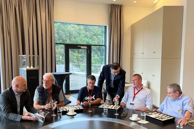 Davon sichtlich überrascht und begeistert, legen die Teilnehmer der Uhrenreise zahlreiche Modelle ans Handgelenk, bekommen die historische Taschenuhr zu sehen, nach der der Jubiläums-Chronograph zum 130-jährigen Bestehen der Marke gestaltet wurde, dürfen natürlich auch diesen noch vor seiner Veröffentlichung begutachten und sehen so manches Modell, das erst in den kommenden Monaten vorgestellt wird. In diesem Zusammenhang lässt Armin Graeser wissen, dass künftig alle Uhrwerke der Union-Uhren mit Silizium-Spiralen und damit einer neuen Reglage ausgestattet werde, was eine deutliche Qualitätssteigerung der zumeist sportlich ambitionierten Union-Uhren darstellt.