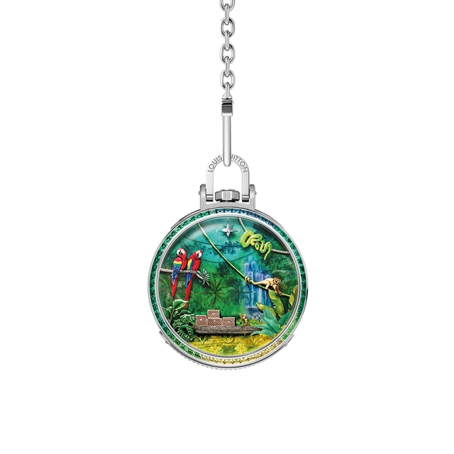 Mit der Escale en Amazonie eröffnet Louis Vuitton ein neues Kapitel uhrmacherischer Exzellenz. Diese einzigartige Taschenuhr, als erste Kreation der neuen Escales Autour du Monde-Kollektion, verbindet höchste Handwerkskunst mit visionärem Design – inspiriert vom üppigen Dschungel des Amazonas.