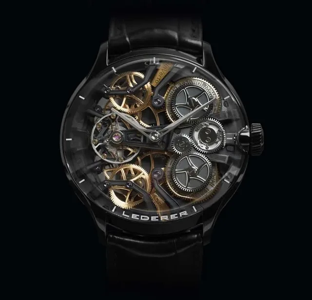 Mit seinem über 25-köpfigen Team in seiner Werkstatt in Saint-Blaise, Schweiz, fertigt Lederer als einer der wenigen unabhängigen Uhrmacher fast alle Komponenten selbst her. Sogar die charakteristischen Zeiger entstehen hier.