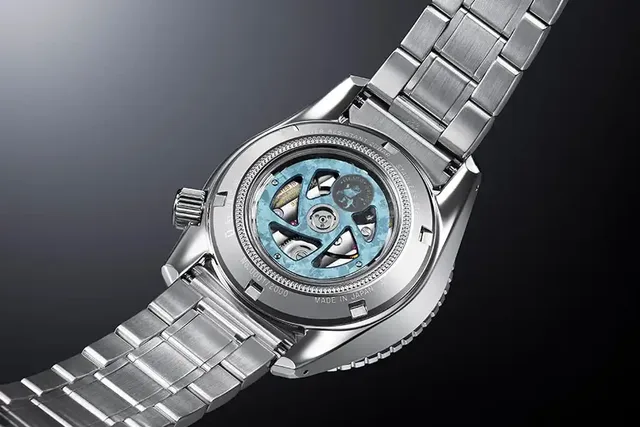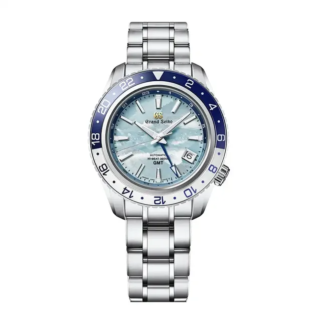 Die Sport-Kollektion präsentiert ein Zifferblatt, das ein sich formendes Wolkenmeer erinnert. In einem blauen Farbton gehalten, der dem Himmel über dem Berg Iwate nachempfunden ist, wird das Zifferblatt von einem 44,4 mm-großen Edelstahlgehäuse samt passendem Armband gehalten. Die drehbare Lünette mit Saphirglas-Inlay in Blau und Weiß ermöglicht die gleichzeitige Anzeige von drei verschiedenen Zeitzonen. Zum ersten Mal verfügt eine mechanische Uhr von Grand Seiko, die bis 20 bar wasserdicht ist, über einen Sichtboden, der Einblicke auf das Hi-Beat GMT-Kaliber 9S86 gibt. Das Kaliber weist eine bemerkenswerte Frequenz von 36.000 Halbschwingungen pro Stunde auf, das entspricht zehn Schlägen pro Sekunde oder 5 Hz, und somit für eine hohe Ganggenauigkeit sorgt. Die Gangreserve beträgt 55 Stunden.