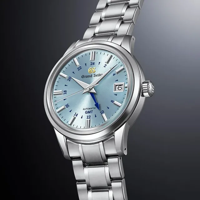Die Titan-Schwungmasse in markantem Grand-Seiko-Blau fängt das Auge ein und wurde durch eine anodische Oxidationsbehandlung eingefärbt. Die Funktionen für die Heimatzeit über den Stundenzeiger sowie die zweite Zeitzone durch den blau angelassenen GMT-Zeiger sind äußerst benutzerfreundlich gestaltet und tragen zur Alltagstauglichkeit dieser Uhr bei. Die blaue 24-Stunden-Skala auf dem hellblauen Zifferblatt zeigt die zweite Zeitzone an.