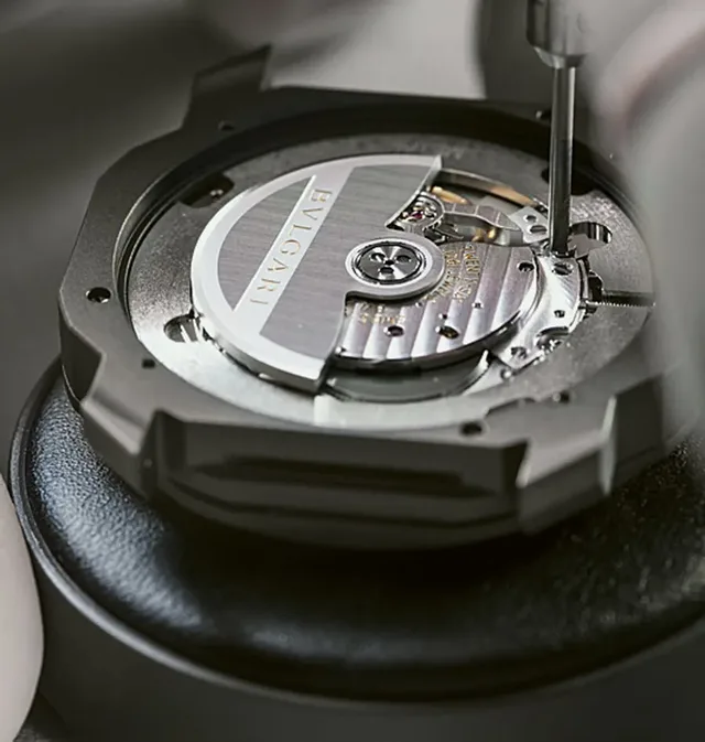 Uhrwerk und Zeitanzeige reflektieren die Welt von Bulgari
