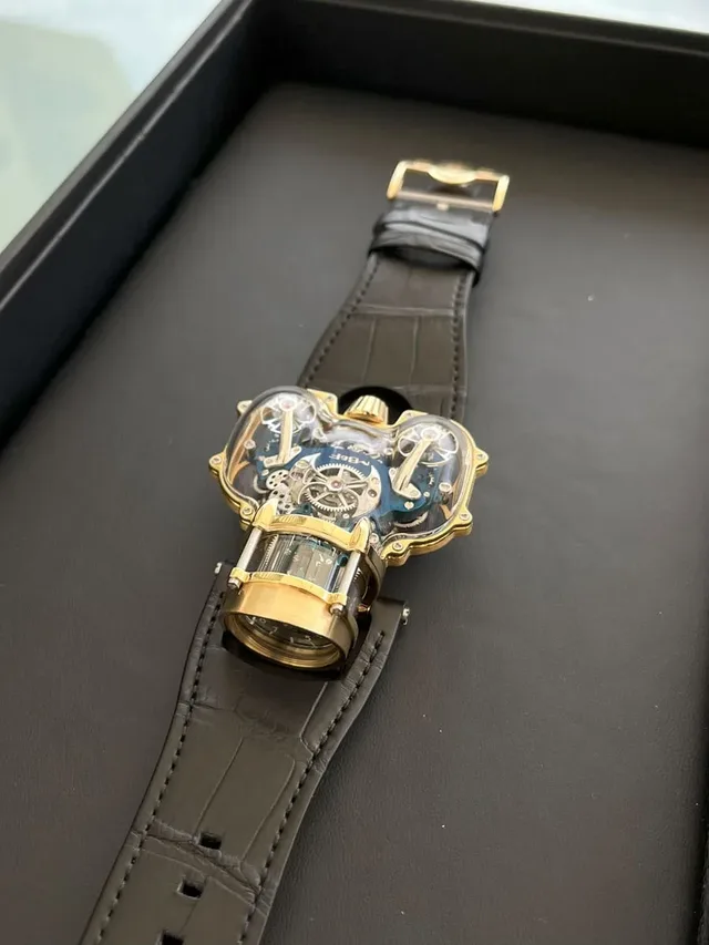 MB&F: Seitenansicht der HM9 Sapphire Vision in Gelbgold