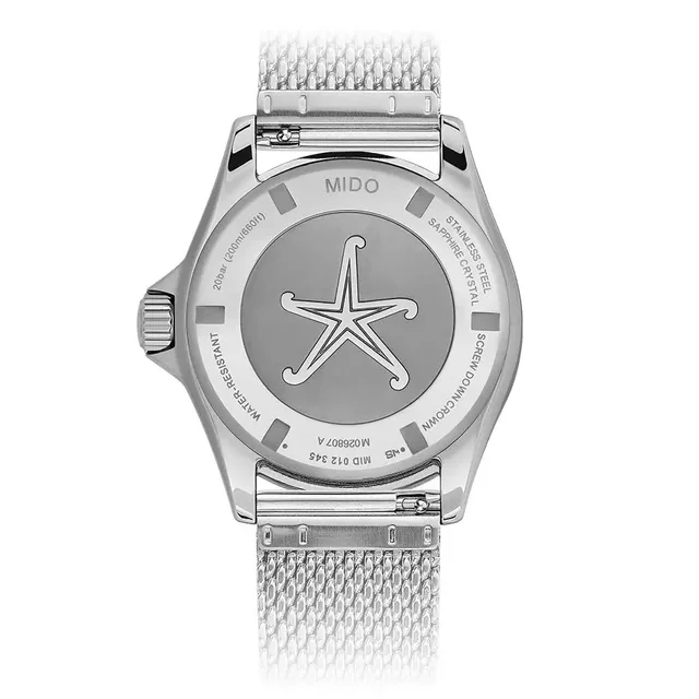 Das Kaliber 80 (Eta) von Mido bietet bis zu 80 Stunden Gangreserve. Eine Nivachron-Spiralfeder sorgt für zusätzliche Präzision sowie eine Wasserdichtigkeit bis zu einem Druck von 20 Bar (200 m).