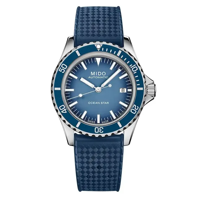 Die Ocean Star Tribute Special Edition fasziniert besonders durch das hellblaue Zifferblatt mit Farbverlauf. Die Indexe sind appliziert und bilden einen Kontrast, bei 3 Uhr ist eine Datumsanzeige untergebracht. Das 40,5 mm-große Edelstahlgehäuse (316L) hebt eine markante verschraubte Krone hervor.