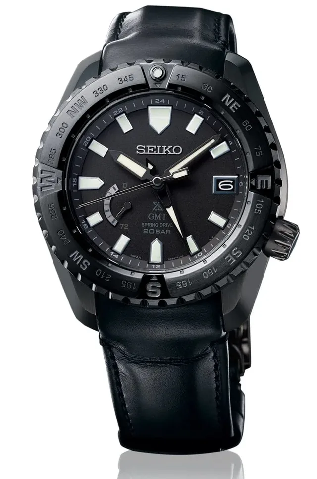 Dazu nimmt man die fast 45 Millimeter große Titanuhr am besten direkt in die Hand, denn das Zifferblatt muss eben gehalten werden. Dann die Uhr solange drehen, bis der Stundenzeiger auf die Sonne zeigt. Nun die Kompasslünette bewegen und zwar so, bis die Markierung für Süden mittig zwischen der Zwölf-Uhr-Position und dem Stundenzeiger steht. Jetzt lassen sich alle Himmelsrichtungen korrekt ablesen. Praktisch an der Uhr ist, dass diese Funktion auch Wassersportler nutzen können, denn die Prospex bleibt bis 200 Meter wasserdicht, beziehungsweise bis 20 Bar druckfest. Sie ist allerdings keine Taucheruhr. Mit der Prospex-Linie LX brachte Seiko nämlich 2019 erstmals Sportuhren in die Kollektion, die über die Passion einer professionellen Taucheruhr hinausgehen. Die Ausführung mit dieser in der Uhrenwelt eher selten zu findenden Kompass-Lünette eignet sich dabei für außergewöhnliche Outdoor-Aktivitäten. Die Prospex LX SNR025 aus hartbeschichtetem Titan und die SNR027 mit schwarzer Hartbeschichtung (je 5.100 Euro) arbeiten dabei mit dem Spring-Drive-GMT-Kaliber 5R66, das über 72 Stunden Gangreserve und eine moderne Zeitzonenfunktion verfügt.Hier finden Sie einen ausführlichen Test der Seiko Prospex LX.