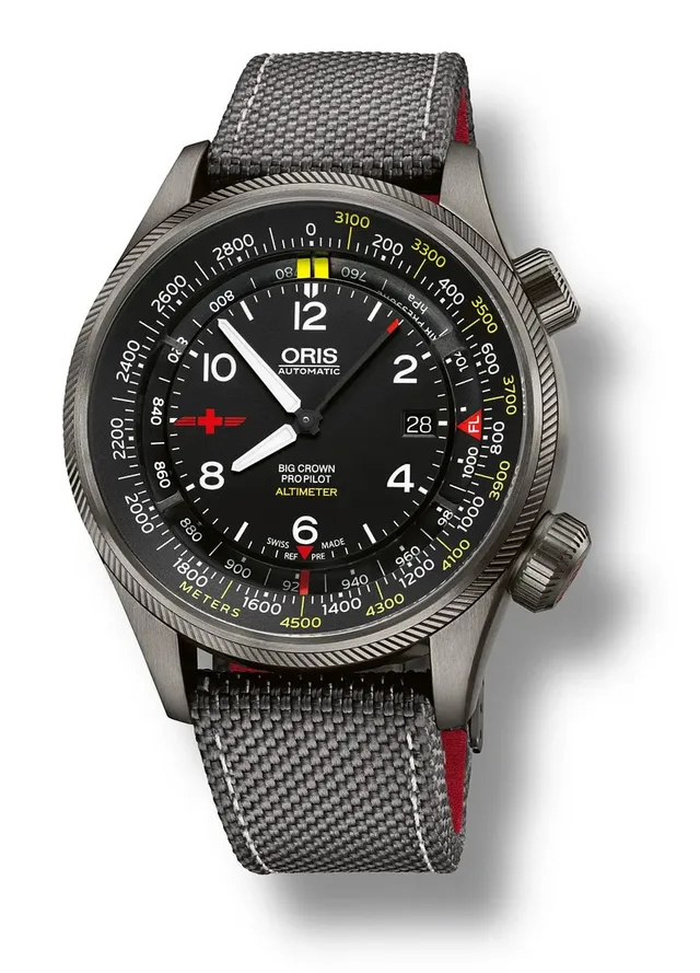 Mit seinem mechanischen Höhenmesser hat Oris eine absolute Spezialität im Programm: Die sich verändernden Luftdruckverhältnissebeim Aufstieg im Lift oder auf Skitour werden von einer sich ausdehnenden Druckdose im Gehäuseboden unter Umgehung des eigentlichen Werkes auf einen Zeiger übertragen. Bis 4.500 Meter reicht die Höhenskala und eignet sich somit für die meisten in Europa erreichbaren Gipfel. Über die große Zusatzkrone bei vier Uhr wird der Höhenmesser mit einem Ausgangswert, zum Beispiel der Höhe der Talstation,synchronisiert. Untergebracht ist die Technik in einem 47 Millimeter großen, grau PVD-beschichteten Edelstahlgehäuse. Die übrigen Anzeigen werden vom bekannten Sellita-Automatikkaliber SW 200 angetrieben. Von der Altimeter Rega Limited Edition gibt es 1.414 Exemplare zum Preis von 3.950 Euro.Gehäuse: Edelstahl, PVD beschichtet, 47 Millimeter | Uhrwerk: Sellita SW 200, Automatik | Preis: 4.050 Euro | limitiert auf 1.414 Stück