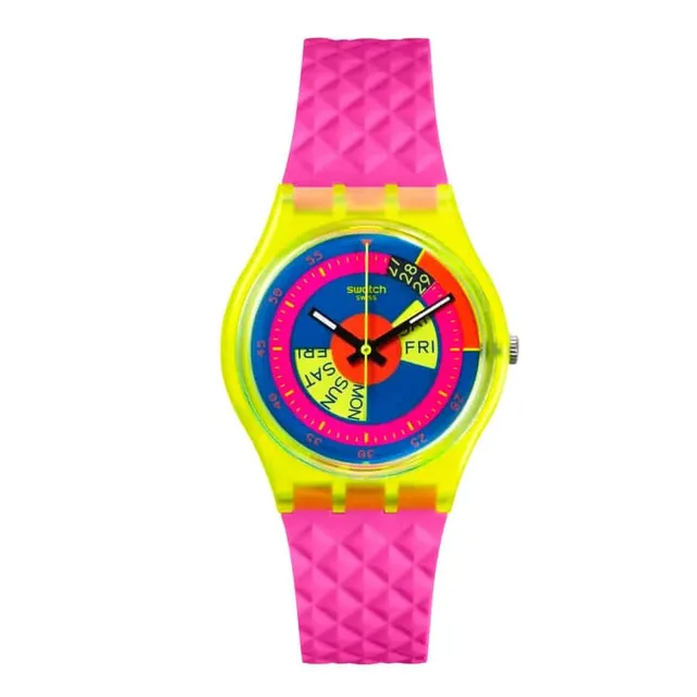 Für die pinke Revolution gibt es auch in der Uhrenbranche keinen besseren Zeitpunkt, denn die Zeitmesser präsentieren sich selten so bunt wie heute. Die Marken werden mutiger und erkunden ein breites Spektrum an Nuancen, Texturen und Materialien. Während früher die Kataloge Modelle in Rosa vor allem in der Kategorie "Damenuhren in kleiner Größe mit Diamanten und Quarzwerk" aufführten, dürfen wir uns dieses Jahr über eine vielfältige Auswahl freuen. Hier stellen wir Ihnen die 7 besten pinken Uhren vor – von der günstigsten bis zur teuersten.Swatch Shades Of Neon