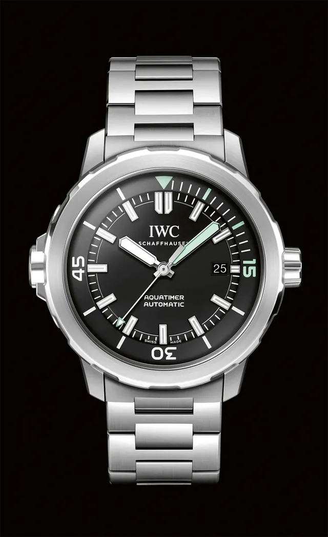 Heute erinnert am ehesten noch die Aquatimer Automatic mit 42 Millimetern Gehäusegröße, 300 Metern Druckfestigkeit und schwarzem Zifferblatt an die 1997 eingestellte Ocean Bund. Allerdings besteht die 7.500 Euro teure Uhr aus Stahl, die Tauchzeitskala lässt sich über eine Krone bedienen und das Automatikkaliber 32111, das der Werkespezialist der Richemont-Gruppe, Valfleurier, entwickelt hat, bietet fünf Tage Gangreserve.5 Fakten über IWC.