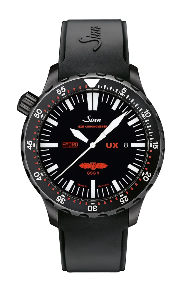 Es überrascht daher nicht, dass die Kampfschwimmer auf die UX von Sinn Spezialuhren zurückgreifen. Das auch Einsatzzeitmesser (EZM) 2B genannte Modell wurde von Sinn Mitte der 1990er Jahre für die maritimen Einheiten der Spezialeinheit GSG 9 (die Maritime Einheit der Bundesgrenzschutzgruppe 9) entwickelt und wird seit 2016 in einer nicht in den zivilen Verkauf kommenden Variante für das KSM gebaut. Diese unterscheidet sich vor allem in der Farbgebung: Bei der Kampfschwimmerversion sind alle Markierungen in Rot, nur Zeiger, Indexe und das Leuchtdreieck der Drehlünette sind weiß.