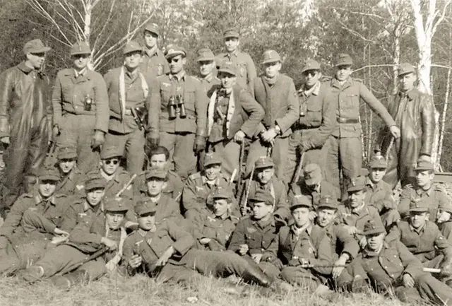 Die „Einsatzgruppe Keller“ im März 1945 an der Ostfront. An den Handgelenken der Kampfschwimmer sind Panerai-Uhren und -Kompasse erkennbar. Foto: Archiv Ehlers & Wiegmann