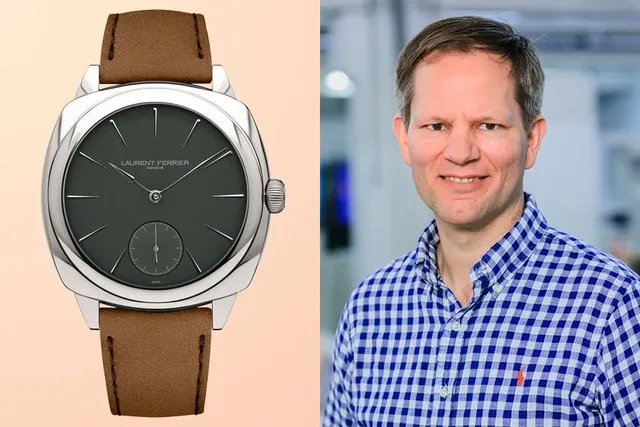 Jens Koch gefällt das dunkelgrüne Zifferblatt mit dem vertikalen Streifenschliff der Laurent Ferrier Square Micro-Rotor Evergreen