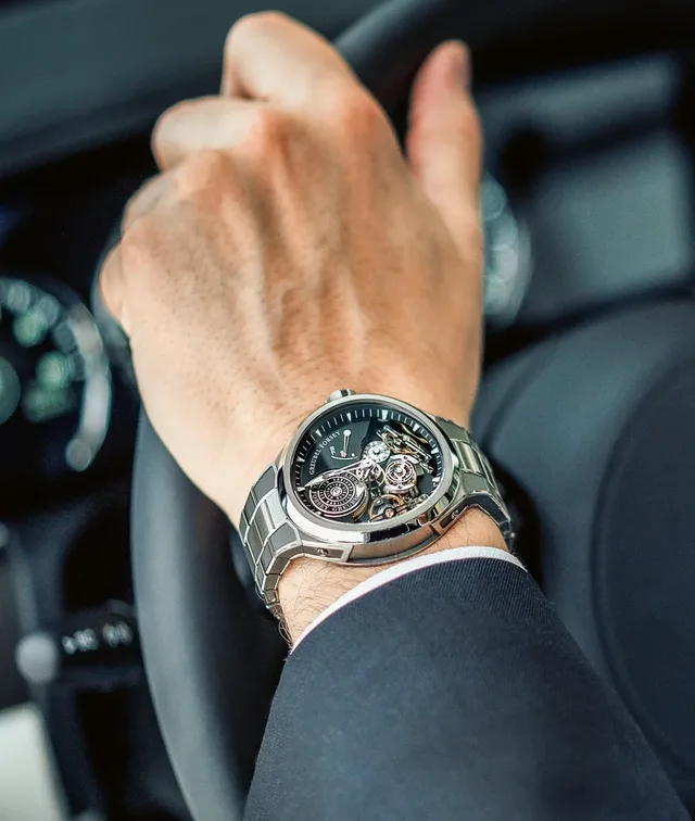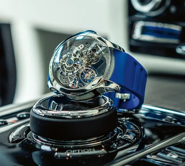 Und das zu bieten, ist kein leichtes Unterfangen, was Greubel Forsey bestätigen kann. Die 2004 von Robert Greubel und Stephen Forsey gegründete Marke ist einer der wichtigsten Vertreter der modernen Haute Horlogerie. Ihre Kreationen kokettieren mit der Perfektion und schwelgen in ihrer Komplexität, aber wie Rolls-Royce sind sie Hüter von Handwerkskunst, die ohne sie bereits vergessen wäre. Doch in Verbindung mit frischem, modernem Design bleiben diese Fertigkeiten wichtig. Die Double Balancier Convexe ist dafür ein gutes Beispiel. Mit ihren beiden um 30 Grad gekippten und über ein Differenzial verbundenen Unruhn will sie die Ganggenauigkeit verbessern. Damit ähnelt sie dem Rolls-Royce Wraith, der alles bietet, was man erwartet, und dann noch einiges, von dem man erst weiß, dass man es braucht, wenn man es hat.
