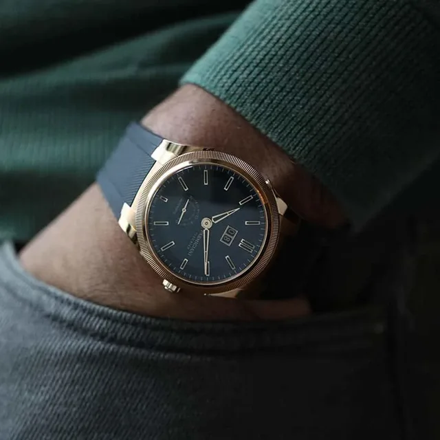 Wie gekonnt und erfahren die Uhr konstruiert ist, lässt sich auch am Handgelenk spüren. Die Ergonomie des Gehäuses in Verbindung mit dem geschmeidigen und sportlichen Kautschukband im „Clou triangulaire“ sorgen für einen perfekten Tragekomfort. Zusammen mit den aus sorgfältiger Verarbeitung resultierenden haptischen Qualitäten gewährleistet diese luxuriöse Armbanduhr so einen extrem hohen Tragekomfort im Beruf wie in der Freizeit. Entsprechend robust und keineswegs wasserscheu sind Gehäuse und Uhrwerk der Tonda GT Rosé Gold Blue konstruiert und bieten eine Wasserdichtigkeit von bis zu 100 Metern.Entdecken Sie jetzt die Parmigiani Tonda GT Rosé Gold Blue unter www.parmigiani.com