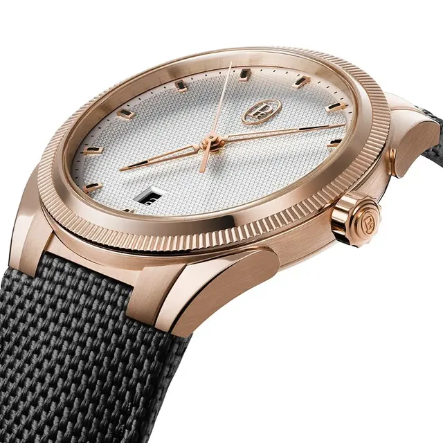 Weitere Informationen erhalten Sie unter: parmigiani.comMarkantes Merkmal der Tonda PF Sport Linie ist zunächst die gerändelte Lünette mit lediglich 160 Einkerbungen, im Vergleich zu den 225 der regulären Tonda PF-Kollektion. Sportlich ist auch das von Hand gefertigte und genähte, in das Gehäuse integrierte Kautschukarmband mit Cordura-Beschichtung. Es lässt sich bei der Parmigiani Tonda PF Sport wie auch beim Chronographen mit einem Stahlgehäuse oder Gehäuse aus 18-karätigem Roségold kombinieren. Beide Versionen sind entweder als Automatikuhren oder als Chronographen erhältlich.
