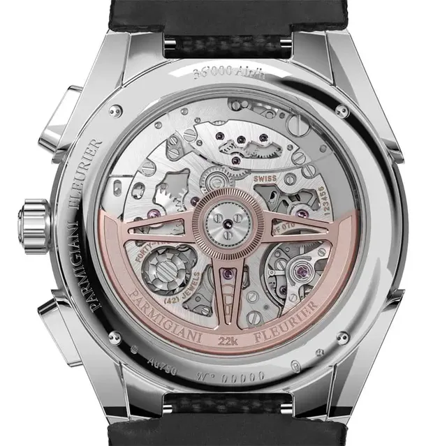 Das integrierten Hochfrequenz-Manufakturwerk PF070 des Chronographen arbeitet mit 36.000 Halbschwingungen pro Stunde und kann so auf die Zehntelsekunde genau stoppen. Die vertikale Kupplung sorgt für sofortiges Starten, und das Doppelfederhaus für 65 Stunden Gangreserve. Zudem bestätigt ein Chronometerzertifikat der COSC die Präzision des Werks.