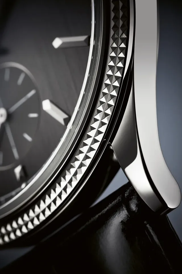Zurück zum Zifferblatt. Im Falle der weißgoldenen Calatrava zeigt es sich in angesagtem Anthrazit mit vertikalem Satinschliff. Die Index-Appliken und Dauphine-Zeiger bestehen aus Weißgold und damit dem gleichen Material wie das Gehäuse. Mit ihren zahlreichen Facetten spielen sie im Licht, sorgen aber auch für ausreichend Kontrast und beste Ablesbarkeit. Und wenn man einmal genauer hinschaut, fällt einem die feine Abstimmung der Linien, Winkel und Kanten zwischen den Indizes und Zeigern auf.Neu ist ganz am Rand die Minuten-Schienenskala, welche zwölf kleine halbkugelförmige Stunden-Appliken integriert. Bei sechs Uhr zieht eine Kleine Sekunde mit feiner Nadel ihre Kreise. Der haardünne Zeiger bewegt sich über ein kreisrund geschliffenes Hilfszifferblatt, das durch ein Fadenkreuz in vier Abschnitte gegliedert ist und die Sekunden in Fünferschritten durch fein gezeichnete Index-Linien markiert. Über allem wölbt sich ein Saphirglas in sogenannter Box-Form, das von der berühmten Clous de Paris-Lünette umfangen wird.Clous de Paris ist eine spezielle Art des Guillochierens oder Prägens, wobei aus sich kreuzenden Schnitten winzige Pyramidenformen mit quadratischen Grundrissen entstehen. Wörtlich übersetzt heiß Clous de Paris: Nägel von Paris. Und in der Tat gehen die pyramidenförmigen Spitzen auf einst in Paris hergestellte Nägel zurück, weshalb man beim Clous de Paris auch vom »Hufnagelmuster« spricht. Die Pyramiden werden von den Handwerkern der Manufaktur nach allen Regeln der Kunst aus dem vollen Material durch Motordrehen herausgearbeitet und anschließend poliert. Dabei führt der Guillocheur mit der einen Hand den Stichel horizontal, während die andere Hand ihn vertikal bewegt. Als Ergebnis entstehen mit leicht abgeschrägtem Profil zwei konzentrische Kreise, auf denen sich winzig kleine Pyramiden aneinanderreihen – mit dem Effekt, ein raffiniertes Lichtspiel hervorzurufen und dadurch dem Zifferblatt Tiefe zu verleihen. Die Lünette der Calatrava ist eines der berühmtesten Beispiele für die Clous de Paris-Handwerkskunst. Man kennt sie aber auch von Audemars Piguet oder Breguet, allerdings nicht vom Gehäusering, sondern eher von den Zifferblättern.