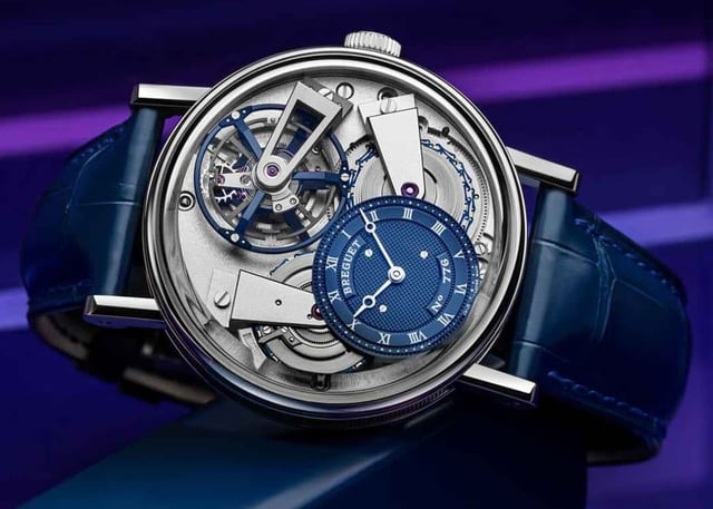 Die von Abraham Louis Breguet gegründete Uhrenmanufaktur Breguet verwendet auch heute noch Breguet-Zeiger, zum Beispiel bei der Tradition Tourbillon 7047, Zifferblattseite