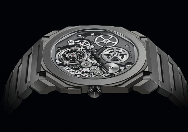 Das 2018 lancierte Octo Finissimo Tourbillon Automatic von Bulgari ist mit einer Gesamthöhe von 3,95 Millimetern nicht nur die flachste Uhr mit Tourbillon, sondern die flachste Automatikuhr überhaupt. Das Manufakturkaliber BVL 288 ist außerdem das flachste Automatikwerk der Welt sowie das flachste Werk mit Tourbillon. Den letztgenannten Rekord teilt es sich mit dem Schwesterkaliber BVL 268 mit Tourbillon und Handaufzug, ebenfalls von Bulgari: Beide messen nur 1,95 Millimeter in der Höhe.