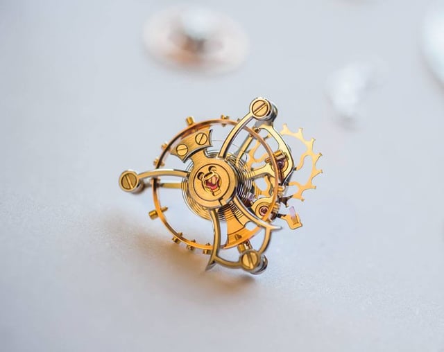 Es ist kaum zu glauben, wie leicht so ein Tourbillonkäfig ist: In den meisten Fällen bringt er nicht einmal 0,3 Gramm auf die Briefwaage – und das, obwohl dort im Normalfall um die 70 Einzelteile versammelt sind, wenn man neben Unruh, Spirale Anker und Ankerrad alle Schräubchen und Stifte, Stoßsicherungen und Lagersteine sowie die Teile, die den eigentlichen Käfig ausmachen, mitzählt.