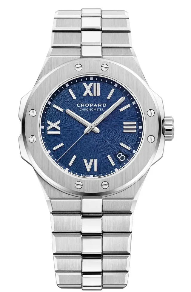Für die Uhr entwickelte Chopard gemeinsam mit dem Spezialisten Voestalpine die antiallergene und und etwas härtere Stahl-Legierung Lucent A223. Das Basismodell in Edelstahl misst 41 Millimeter. Für Vortrieb sorgt das automatische Manufakturkaliber 01.01-C mit Chronometerzertifikat und 60 Stunden Gangreserve. Die Alpine Eagle kostet 12.200 Euro.