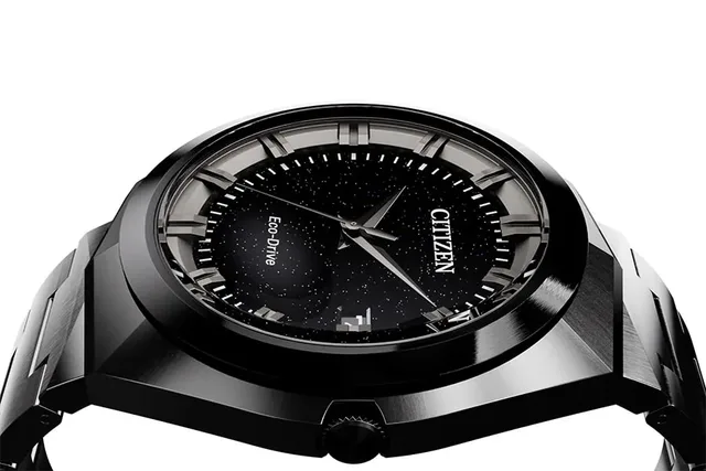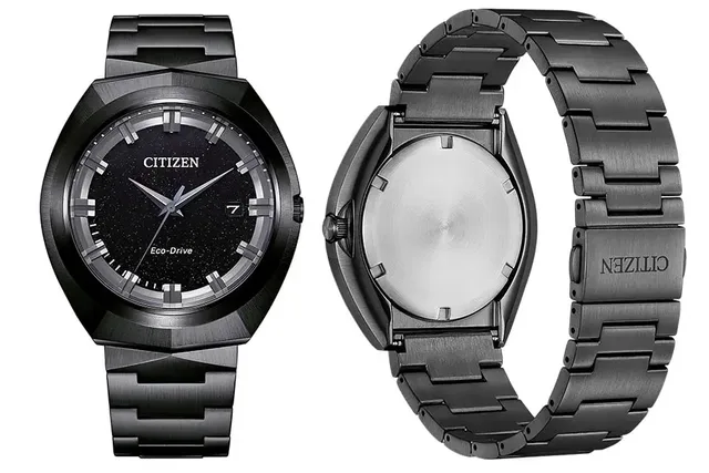 Die sofort ins Auge fallenden Linien und Formen des neuen Gehäuses sind inspiriert von dem historischen Modell, nutzen aber das Know-how von Citizen bei der Herstellung, Verarbeitung und Verfeinerung von Edelstahluhren. Dieses Modell ist in Edelstahl gefertigt und mit Black IP beschichtet. Die vertikalen Linien des Gehäuses werden durch die stilvollen Facetten auf jeder Seite und die eleganten Messingzeiger akzentuiert.