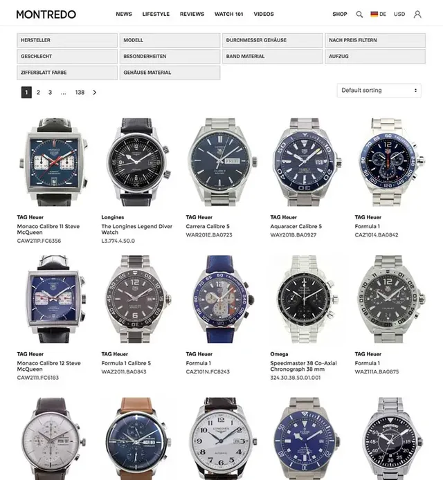 Mit knapp 10.000 Uhren bietet Montredo eine riesige Auswahl an Uhren und einen Querschnitt durch die gesamte Industrie. Angefangen von erschwinglichen Quarzuhren bis hin zu Haute Horlogerie-Meisterstücken.