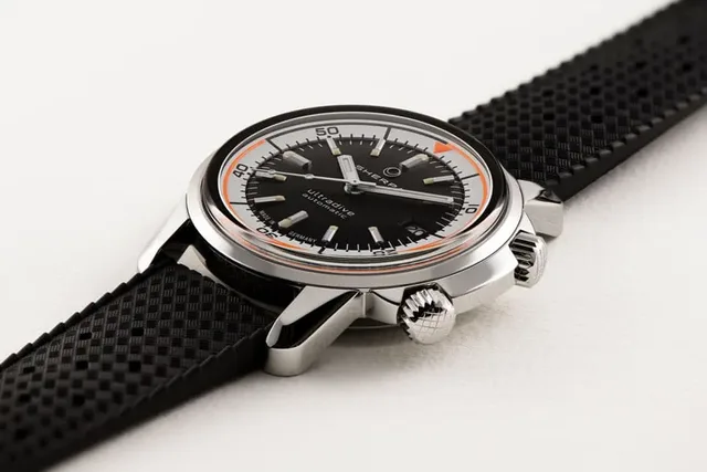 Die ersten beiden Modelle heißen OPS und Ultradive. Sie gleichen ihren historischen Vorbildern in allen wichtigen Details. Eyecatcher ist der auffällige Schutz für die beiden Kronen (die obere dient zum Bewegen der innen liegenden Drehlünette). Auch der EPSA-Stop genannte Bajonettverschluss des Gehäusebodens, die Kompressor-Konstruktion der Kronen mit Namen „Monoflex“ und die schwarzen Kautschukbänder im Tropic-Design folgen den Originalen. Typisch sind außerdem bei der OPS das schwarz DLC-beschichtete Stahlgehäuse, der orange Sekundenzeiger und die vielen rechteckigen Indexe. Die Ultradive erkennt man an der naturbelassenen Stahlschale sowie dem „Double Lollipop“-Sekundenzeiger mit zwei runden Leuchtfeldern.