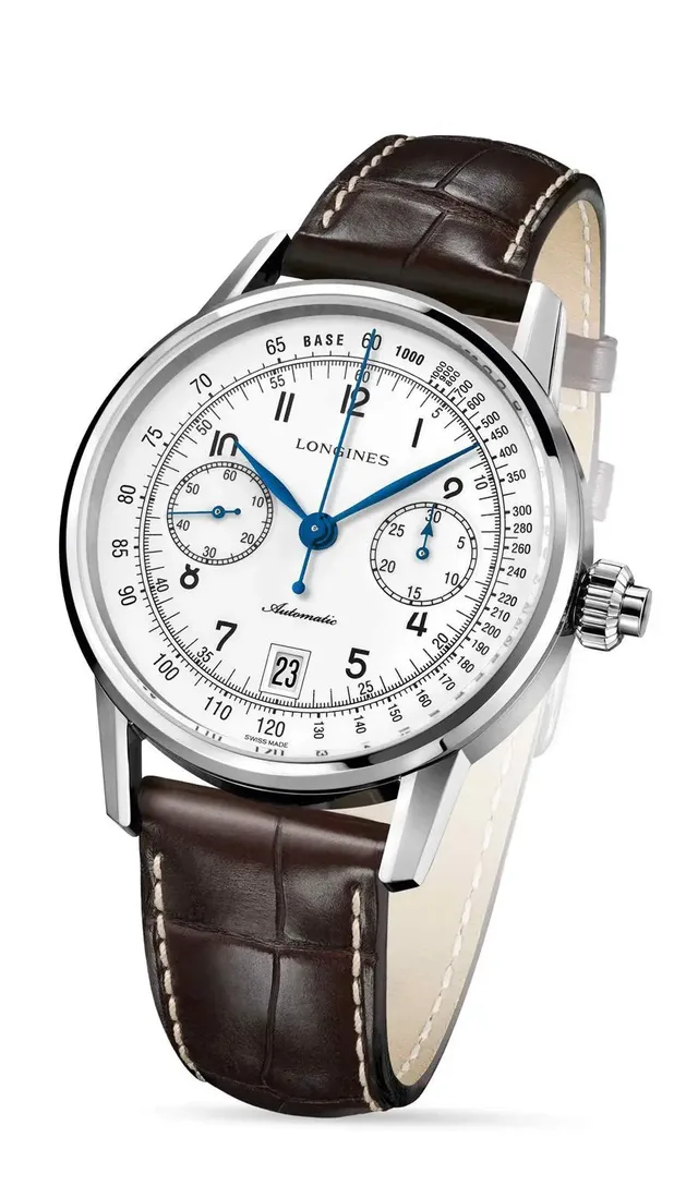 Der Durchmesser des Edelstahlgehäuses wächst um einen Millimeter auf 41 Millimeter. Darin arbeitet das Automatikkaliber L 788, das die Eta exklusiv für Longines produziert und dort unter der Bezeichnung A08.L11 läuft. Es erlaubt ein Datum bei sechs Uhr sowie eine Chronographenfunktion. Starten, Stoppen und Nullstellen erfolgen über einen in die Krone integrierten Drücker. Neu ist auch die Tachymeterskala am Zifferblattrand. Der neue Stopper kommt wahlweise mit einem weißen oder schwarzen Zifferblatt. Beide kosten jeweils 2.750 Euro. mg
