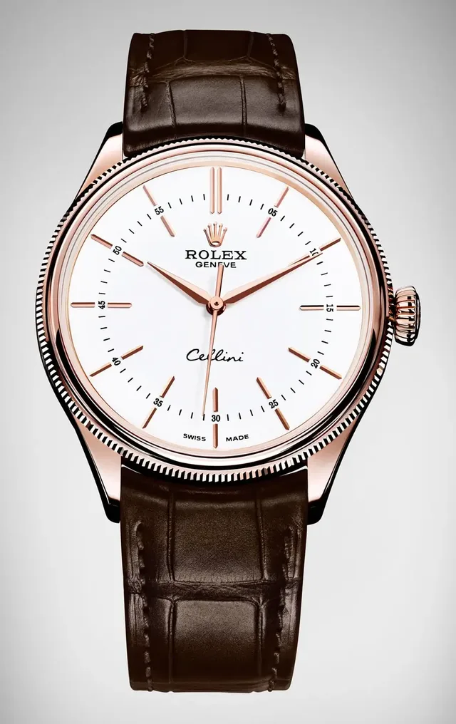 Die Cellini Date, die Rolex von 2014 bis 2023 gebaut hat und deren Antlitz von einem Zeigerdatum bei 3 Uhr geprägt war, wurde vom Automatikkaliber 3165 angetrieben.