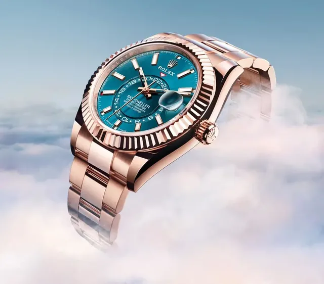 Rolex: Oyster Perpetual Sky-Dweller von 2023 mit Roségoldgehäuse und blaugrünem Zifferblatt