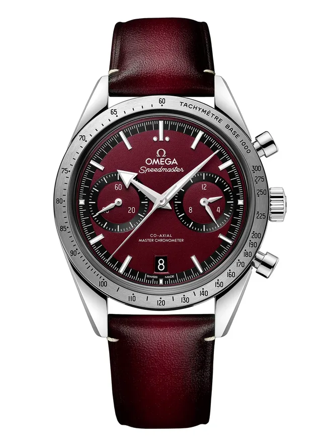 Omega Speedmaser `57 mit burgunderrotem Zifferblatt