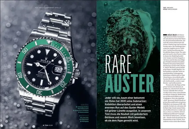 Die neue Submariner von Rolex hat mit ihrem überarbeitetem Gehäuse in 41 Millimetern und dem neuen Manufakturkaliber mit langer Gangreserve die Herzen der Fans im Sturm erobert. Wie gut ist das begehrteste Modell Submariner Date mit grüner Lünette wirklich? Das klärt der Test von Chronos, den Sie schon vor Hefterscheinen der Ausgabe 02.2021 am 19. Februar hier downloaden können.
