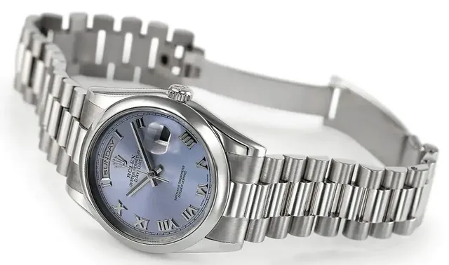 Platin-Modelle widerstehen der täglichen Belastung besser und sind deshalb oft in einem besseren Zustand vorzufinden, ebenso Modelle aus Weiß- oder Roségold. Nicht verwunderlich ist hier der höhere Einstiegspreis – Platinmodelle erzielen je nach Baujahr mehr als 20.000 Euro. Besondere Exemplare mit Steinbesatz oder Perlmuttzifferblatt liegen preislich bei 50.000 Euro und darüber. Selten und begehrt sind Modelle mit Edelsteinzifferblatt oder die Day-Date mit Wurzelholzzifferblatt aus den 1980ern.