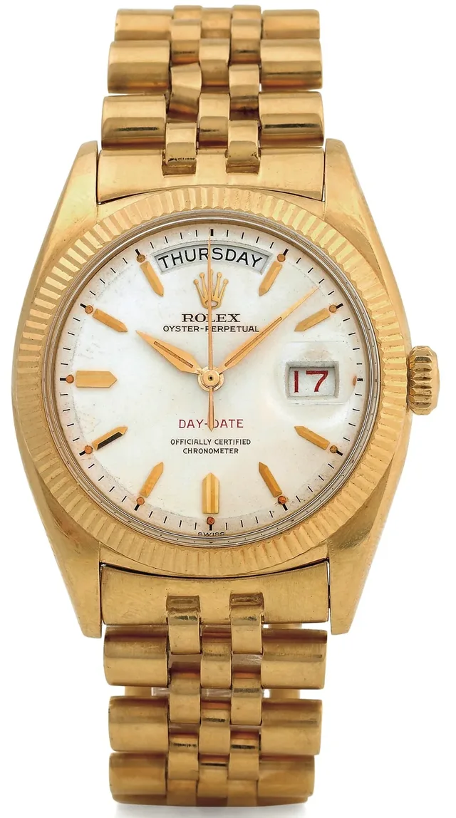 Papst Johannes Paul II., die US-Präsidenten Dwight D. Eisenhower, Lyndon B. Johnson, Franklin D. Roosevelt, John F. Kennedy, der Wall-Street-Magnat Warren Buffett und sogar der ehemalige deutsche Fernsehkommissar Stephan Derrick – sie alle haben und hatten etwas gemeinsam: die Rolex Day-Date in massivem Gold am Handgelenk. Im Falle des TV-Polizisten aus München war es sogar die private Armbanduhr des Derrick-Darstellers Horst Tappert, die nicht fehlen durfte.