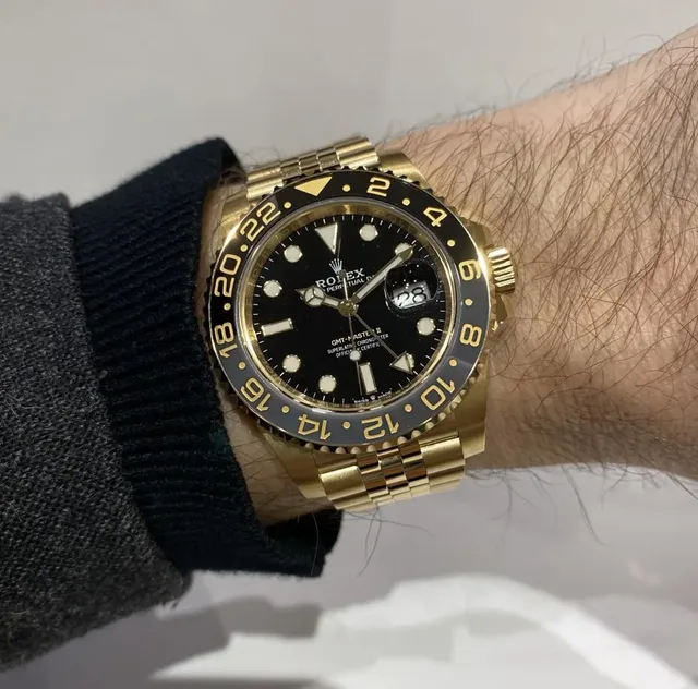Wristshot der Rolex GMT-Master II in Gelbgold