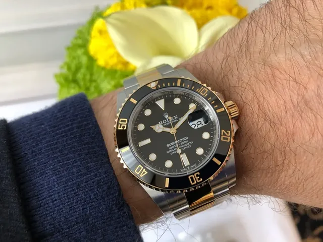 Wristshot der Rolex Submariner Date 41 in Edelstahl Oystersteel und Gelbgold