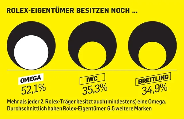 Mehr als jeder 2. Rolex-Eigentümer besitzt auch eine oder mehrere Omega-Uhren