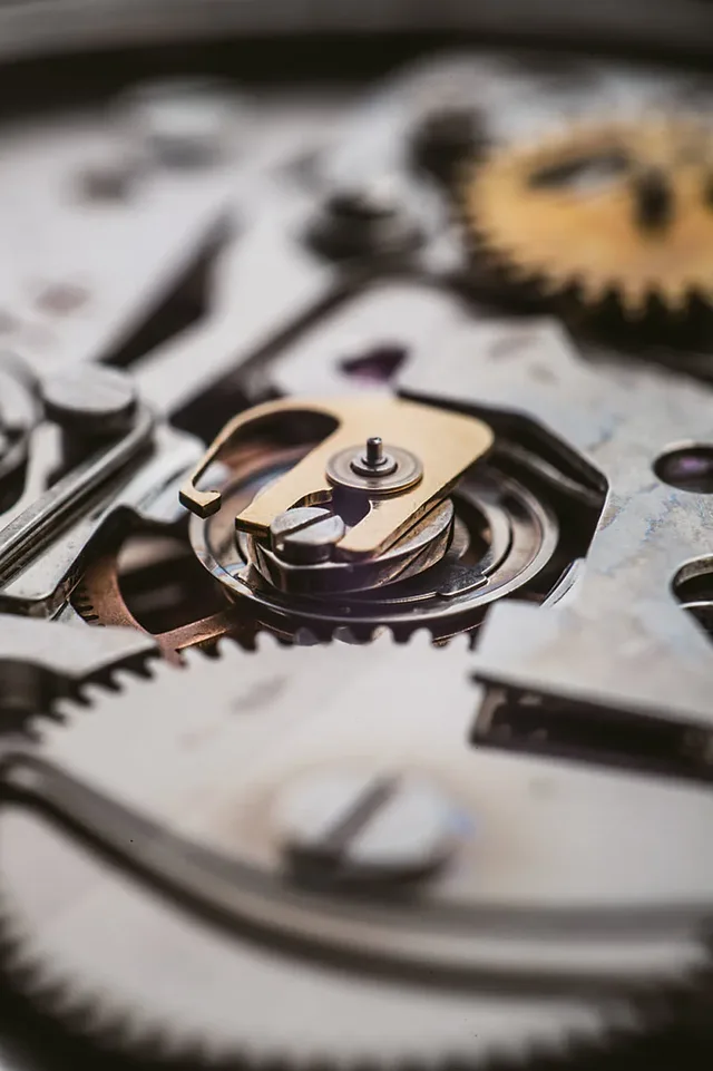 Die vertikale Kupplung von schräg oben aus betrachtet. Dieses Foto zeigt, dass Seiko bereits 1964 selbst komplexe herzförmigen Nocken ausstanzte.