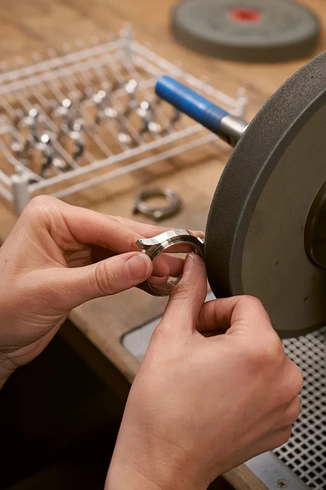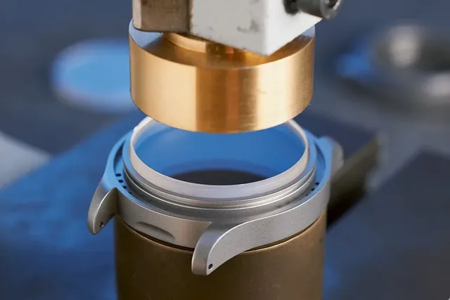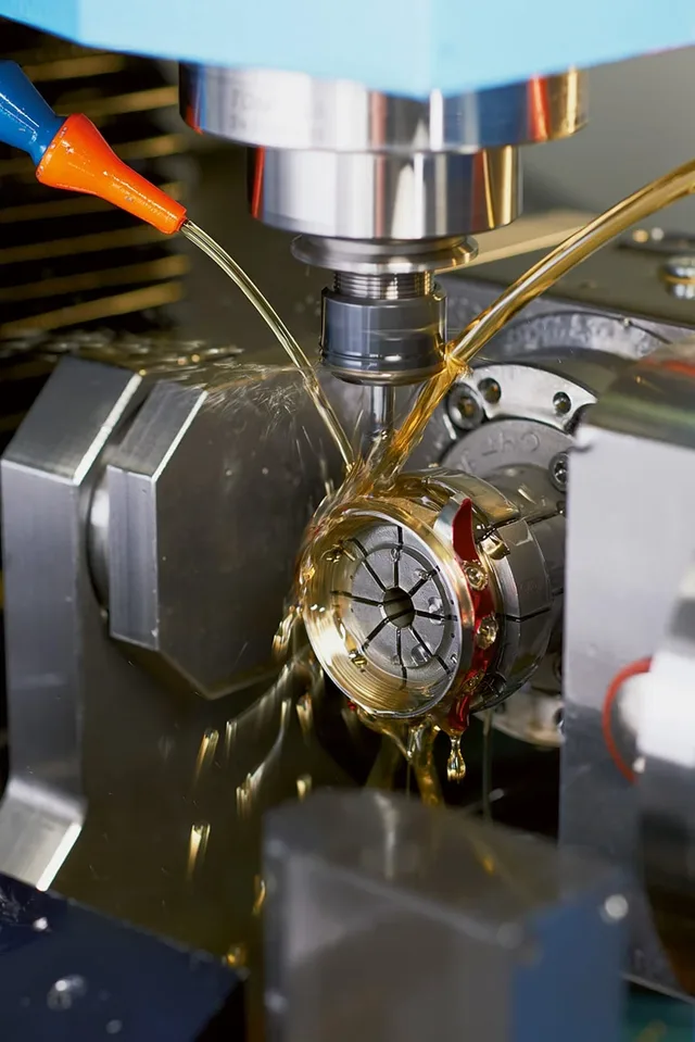 Wenn die Gehäuse in Frankfurt am Main ankommen, sind sie bereit für die Uhrwerkmontage. Das war nicht immer so. Beherrschte man anfangs »nur« Drehen und Fräsen, kamen schnell Oberflächenbearbeitung und Montage hinzu. Seit 2002 werden Komplettgehäuse ausgeliefert.