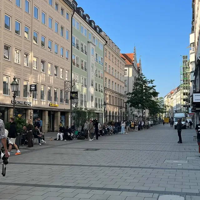 Zum Verkaufsstart standen vor dem Store in München zwei Stunden vor Öffnung ca. 150 bis 200 Personen