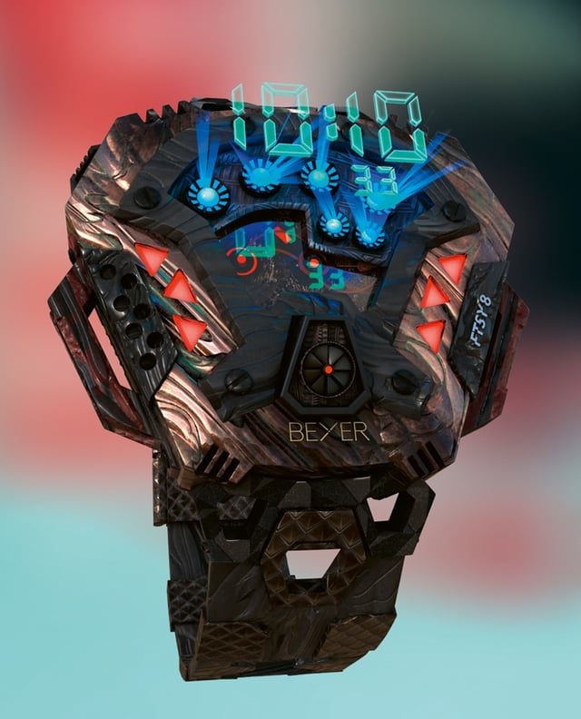 Hast du auch die anderen Designer kennengelernt, die an dem Projekt TimeWarp beteiligt waren?Ja, aber witzigerweise erst gegen Ende des Projektes. Mir wurde erst mit der Zeit klar, was für ein Potenzial in der Geschichte steckt. Die Arbeit für Beyer ist eine Art Pionierarbeit, die dieses Thema im Uhrenbereich erstmals austestet. Spannend wird, wie sich digitale Uhren (nicht zu verwechseln mit Digitaluhren) mit der Zeit entwickeln werden. Wenn man die Historie der gebauten Uhren ansieht, dann waren die Ursprünge bei Weitem nicht das, was man heute darunter versteht. Wenn noch mehr Menschen an dem Thema dran sind, wird hier eine eigene Welt entstehen, mit eigenen Technologien, neuen Archetypen und Kultobjekten.Beyer hat im April mit einem ersten „Drop“, dem sogenannten „Genesis Drop“ begonnen, eure NFT-Uhren zu verkaufen. Der erste Schwung war nach einigen Minuten ausverkauft, der zweite „Drop“ folgte im Juni. Hast du selbst deine Kreationen auch in irgendeiner Form erhalten?Von den Uhren, die ich für Juwelier Beyer gestaltet habe, habe ich jeweils ein NFT aus dem „Genesis Drop“ bekommen. Diese habe ich in meine Wallet auf einer Plattform namens Metamask (metamask.io) geladen. Als Creator könnte ich noch unzählige weitere NFT-Objekte machen. Aber die Uhren aus der Beyer-Kollektion sind etwas Besonderes, weil sie Teil der offiziellen Kollektion sind.