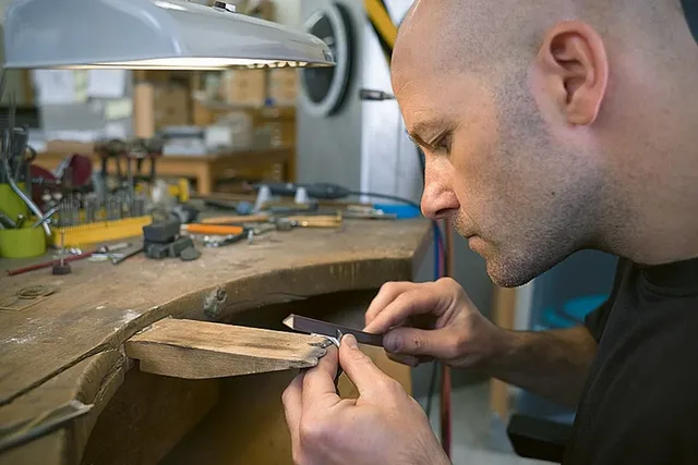 Auf Wunsch fertigt Schauer diesen einen Zeiger auch in Roségold oder Platin für jeweils 30 Sonderstücke an. Für einen solchen Zeiger braucht er etliche Stunden und vor allem Ruhe, damit am Ende die Qualität stimmt. Ganz klar, dass ich da am Telefon nicht stören darf.