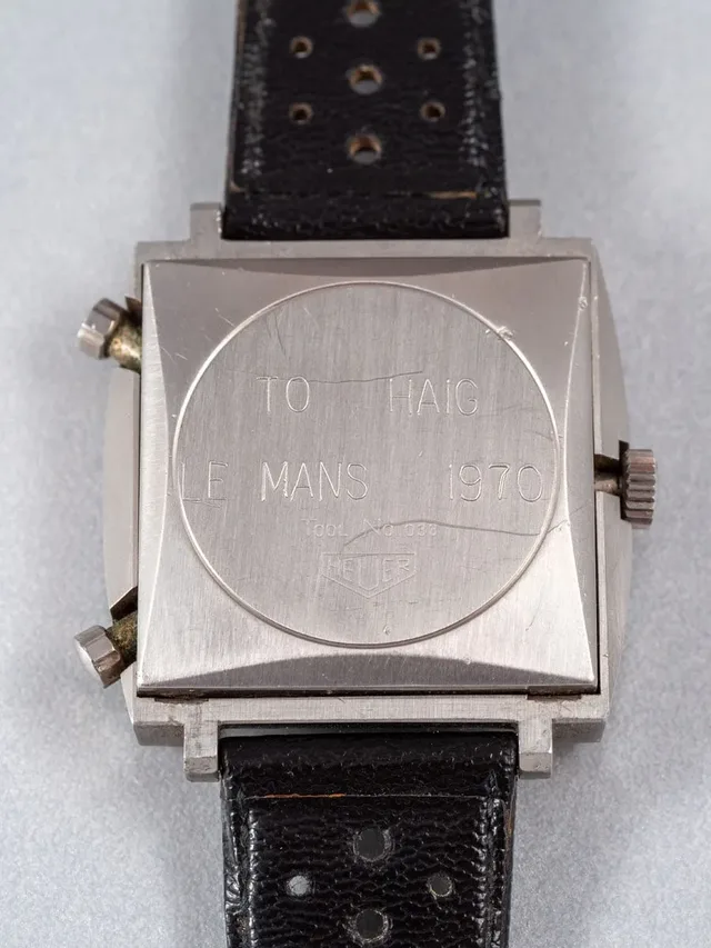 Der Schauspieler hatte den Zeitmesser nach Abschluss der Dreharbeiten dem Chefmechaniker des Films, Haig Alltounian, geschenkt, wie die Bodengravur "To Haig Le Mans 1970" belegt. Mit dieser Uhr - und einem zweiten Exemplar der gleichen legendären Referenz 1133 - war Auto- und Motorradfan McQueen im Porsche 917 mit über 300 Stundenkilometern über die Rennstrecke von Le Mans gerast.Er überreichte sie Haig mit den Worten: "Danke, dass du mich all die Monate am Leben gehalten hast." Der Mechaniker wollte die Uhr zunächst nicht annehmen, tat dies aber, als McQueen auf die bereits angebrachte Gravur verwies.