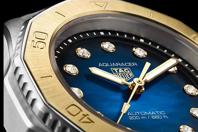 Sowohl das 40-Millimeter- als auch das 30-Millimeter-Modell werden von einem mechanischen Schweizer Automatikwerk angetrieben, das die Stunden, Minuten, Sekunden und das Datum anzeigt. Das 40-Millimeter-Modell ist mit dem TAG Heuer-Kaliber 5 (basierend auf dem Eta Uhrwerk 2824-2) ausgestattet, das 30-Millimeter-Modell mit dem TAG Heuer-Kaliber 9 (Sellita SW1000-1 a). Beide versprechen eine Wasserdichtigkeit bis 200 Meter und werden von einem Gehäuseboden aus Stahl umschlossen, der mit sich wiederholenden Sechseck- und Kompassmotiven verziert ist.Die Referenzen WBP2150.FT6210 (40 mm blau), WBP2151.FT6199 (40 mm schwarz/rosé), WBP2450.FT6215 (30 mm blau/Diamanten), WBP2451.FT6200 (30 mm schwarz/rosé) liegen bei ca. 5.100 Euro. dp