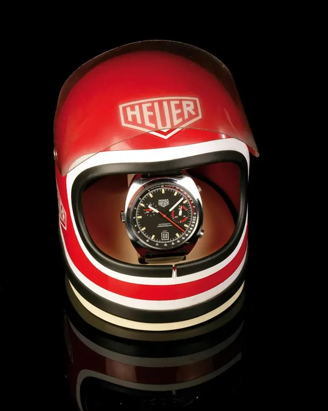 Der Helm: Die spezielle Auslieferungsbox der Heuer Monza ist heute kaum noch zu finden