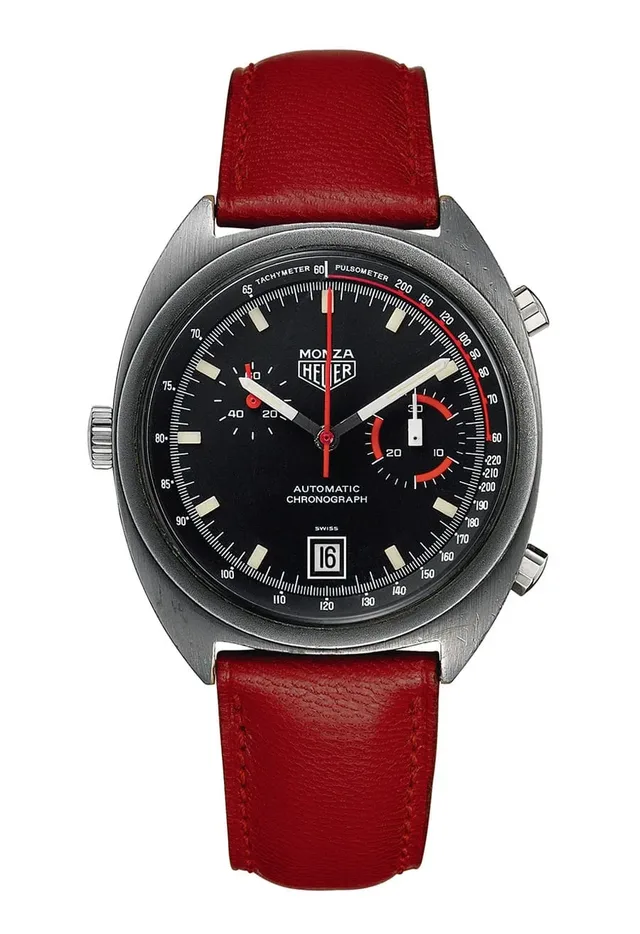 Das Gehäuse misst 42 Millimeter und wird an einem Armband aus schwarzem Kalbsleder im Racing-Design getragen. Im Innern kommt das automatische Eta-Kaliber 2894 zum Einsatz, das TAG Heuer Calibre 17 nennt. Die Uhr ist auf dem Gebrauchtmarkt ab circa 4.100 Euro erhältlich. Die Monza hat sich im Laufe der Jahre zu einem Klassiker entwickelt, der sich nicht hinter einer Heuer Carrera zu verstecken braucht.Einen Test zur Monza Calibre 17 der Chronos-Redaktion finden Sie hier:Hier finden Sie den Testartikel als Download für 0,99 Euro.