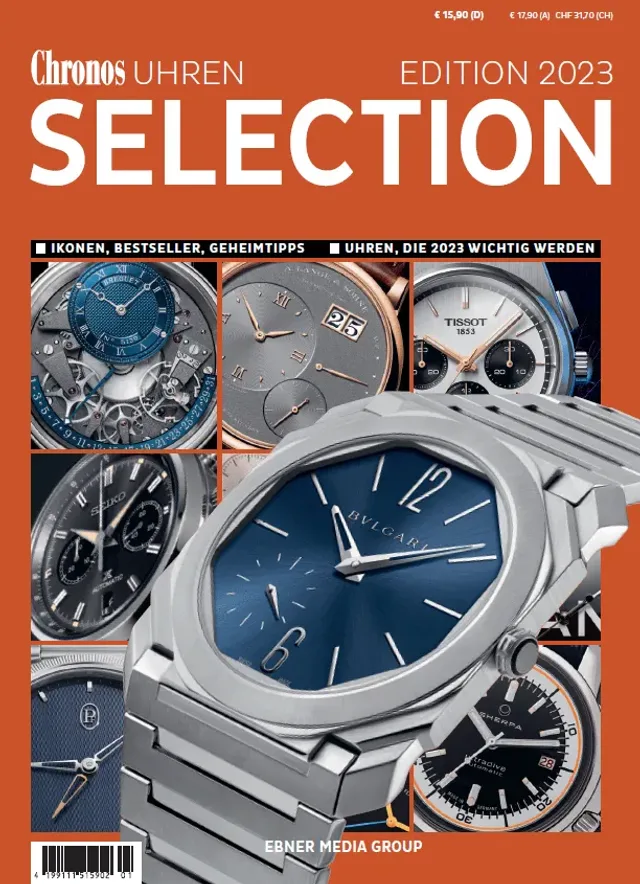 Seit heute steht die neue Chronos Edition Selection 2023 im Zeitschriftenhandel. Die Ausgabe zeigt die ganze Welt der Luxusuhren in einem Sammelband. Im übergroßen Format kommen die schönsten Neuheiten in spannenden Fotokompositionen aus Zifferblatt- und Werkansicht besonders gut zur Geltung. Kompetent erklärt die Chronos-Redaktion, was die Uhrenbranche in diesem Jahr bewegt. Seit über 30 Jahren liefert die Chronos Edition Uhrenliebhabern Informationen zu den wichtigsten Marken, technische Hintergründe und Uhren, Uhren, Uhren.